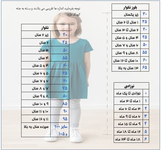 • ✅ رشد سریع نوزاد تا ۲ سال: هر ۳–۴ ماه اندازه‌ها را دوباره بگیرید.