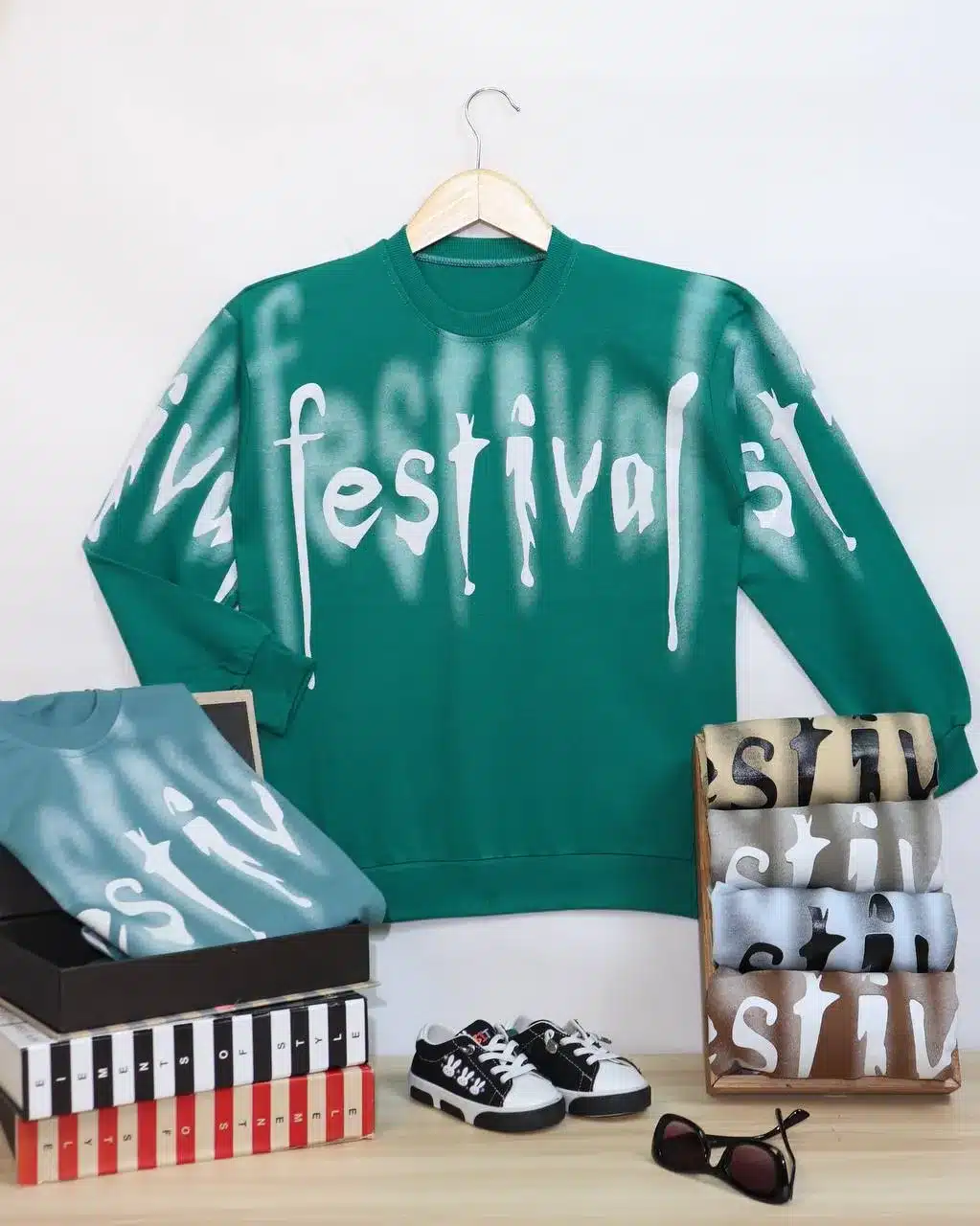 این تیشرت از پارچه پنبه خالص یا ترکیب پنبه با پلیاستر برای افزایش دوام تولید شده است. طرحهای فستیوال با استفاده از تکنیک چاپ سیلک با رنگهای روشن به پارچه (DTG) اجرا میشوند که ماندگاری خوبی در برابر شستشو دارند. یقه گرد و آستین بلند از ویژگیهای رایج آن است.