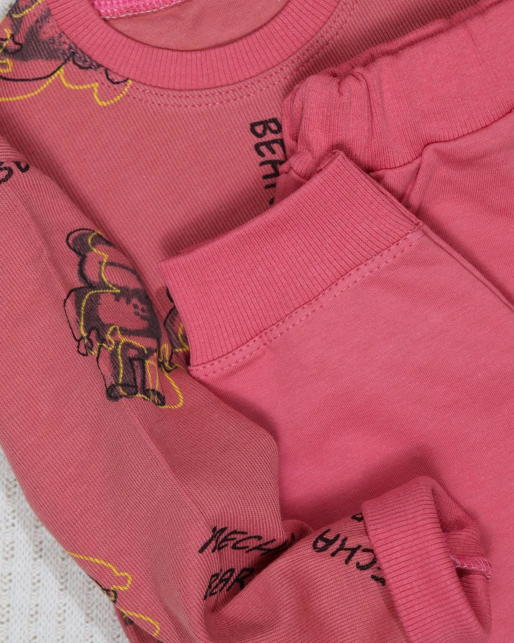 پارچه این ست از ترکیب ماندانا و پنبه تهیه شده که تنفسپذیری مناسبی داره و به پوست اجازه تنفس میده. این ترکیب باعث میشه لباس سبک باشه و در عین حال مقاومت خوبی در برابر کشیده شدن روزمره داشته باشه، بنابراین فرم خودش رو به خوبی حفظ میکنه.