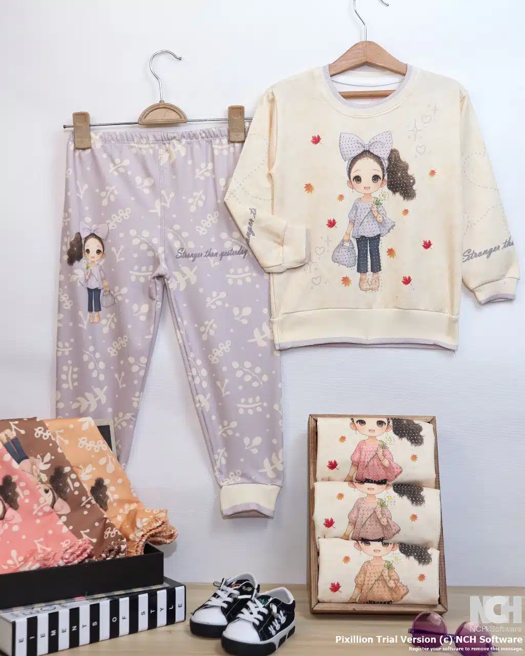 طرحهای دخترانه روی لباس با چاپ باکیفیتی اجرا شده که در شستشوهای معمول کمرنگ نمیشود. دوخت منظم و استفاده از پارچه فلامنت باعث میشود این بلوز شلوار زمستانه طرح دختر پس از شستشوهای متعدد همچنان شکل و نرمی خود را حفظ کند.