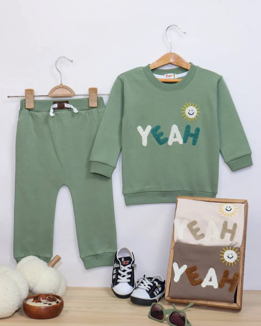 این بلوز شلوار نوزادی اسپرت طرح خورشید یک ست شاد و پرانرژی برای کوچولوهای شماست. جنس پنبهای آن حس نرم و لطیفی روی پوست نوزاد دارد و به پوست اجازه میدهد به راحتی نفس بکشد. طرح خورشید خندان روی لباس، ظاهری روشن و مثبت ایجاد میکند.