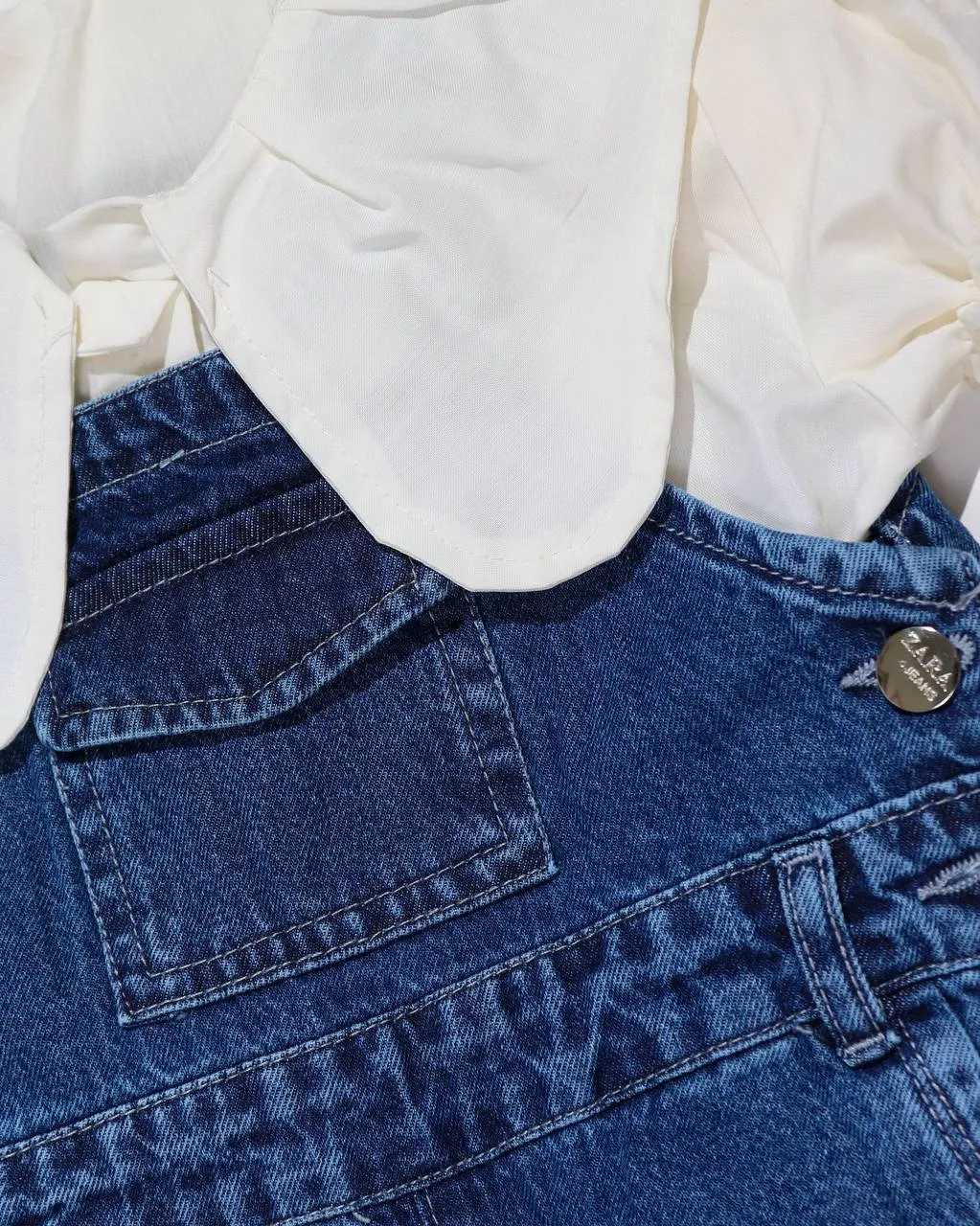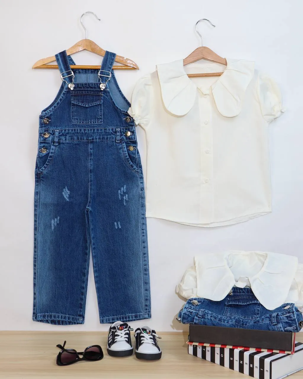 ترکیب شومیز و بیلر، هم حس دخترانه و شیکی دارد و هم به دلیل راحتی بیلر، امکان حرکت آزادانه را برای کودک فراهم میکند. این ست را میتوان با کفشهای اسپرت ست کرد.