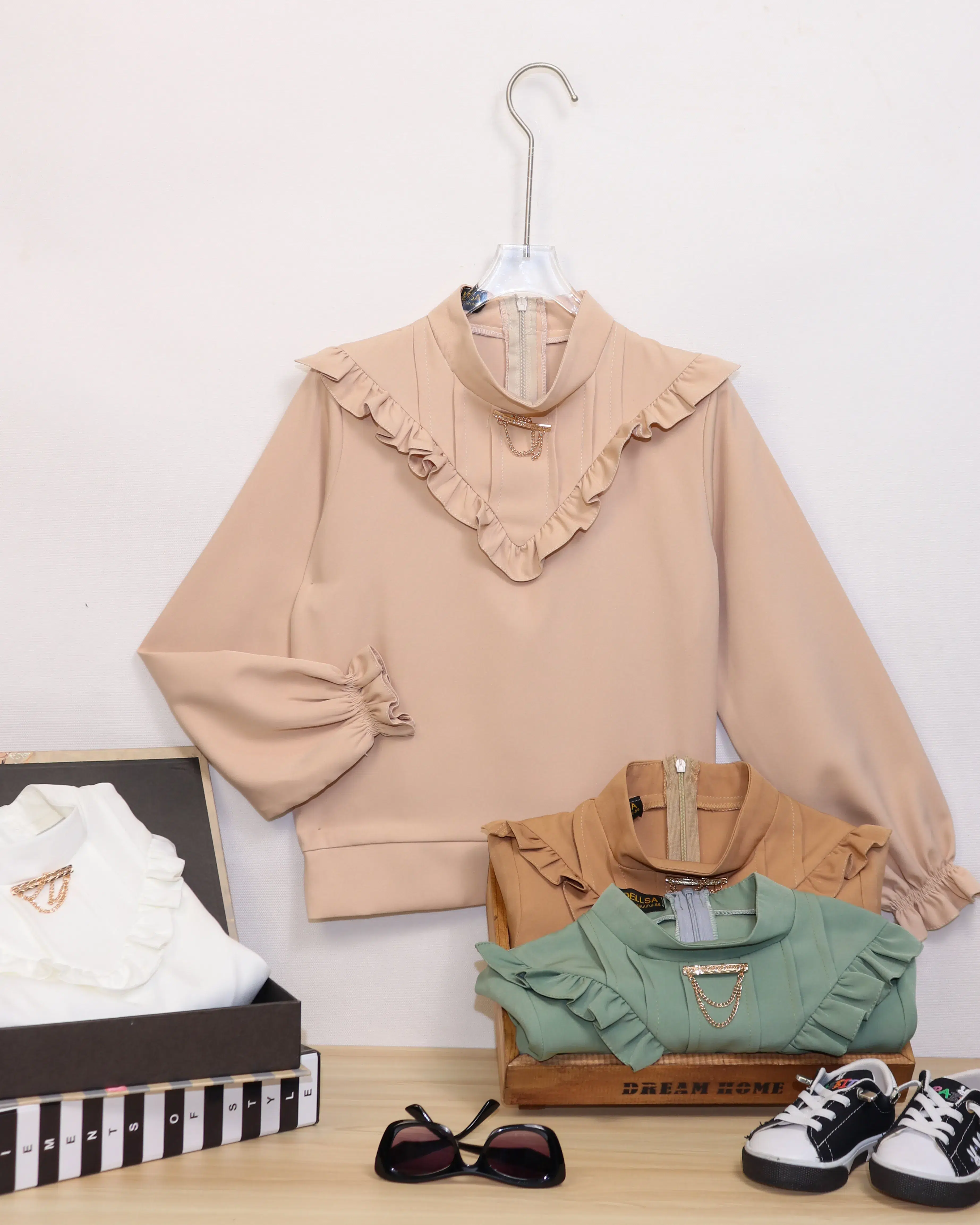 چینهای طراحی شده روی لباس، به آن حجم و حرکتی زیبا میبخشد و هنگام راه رفتن ظاهر جذابی ایجاد میکند. این شومیز به دلیل سبکی و نرمی پارچه، برای پوشیدن در مدت زمان مراسم راحت است.