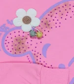 طراحی بگ شلوار باعث راحتی در حرکت شده و بلوز با طرح خرس و نگین جلوهای خاص به استایل دخترانه میبخشد.