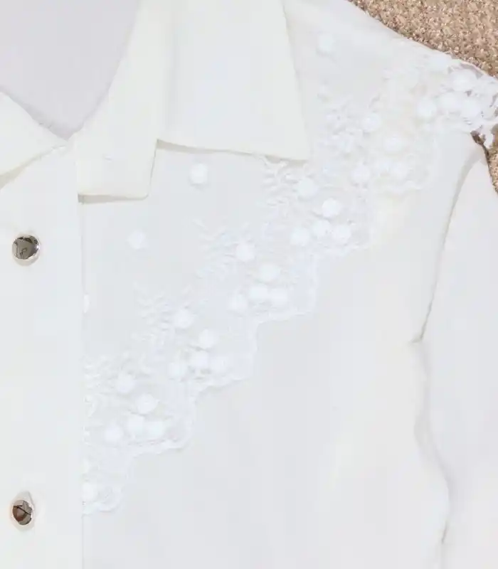 🛍️ خرید شومیز سفید گیپور بوگاتی سایز 50/65 | کد 3025 با ارسال رایگان
